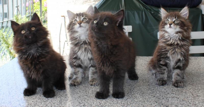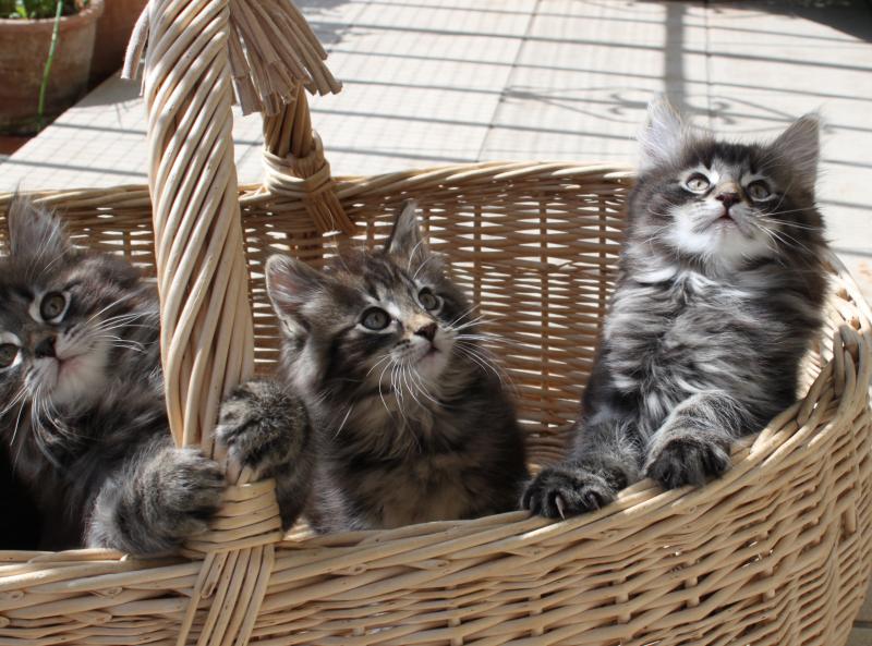 Wir behielten immer mal wieder ein Mädchen zur Weiterzucht oder kauften uns geeignete Katzenmädchen bei anderen Züchtern. Die Kater, bis jetzt deren drei, haben wir immer aus Norwegen geholt.